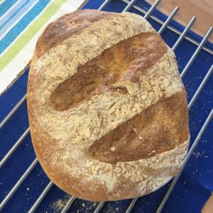 Nachdem das Brot fertig gebacken ist das noch heiße Brot mit etwas Wasser bestreichen.