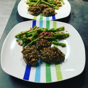Während die Schweinemedaillons im Ofen sind, die Enden der Bohnen abschneiden und anschließend 8 Minuten in Salzwasser kochen. Anschließend die Bohnen mit den Zwiebeln und etwas Öl in der Pfanne anbraten. (Tipp: Wer möchte kann hier noch etwas Speck hinzufügen, schmeckt besonders lecker ;))